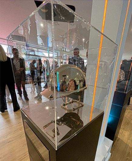 Unsere Auswahl an Vitrinen bietet die ideale Präsentationsmöglichkeit für unsere Helme, besonders geeignet für Empfangshallen als stilvolle Blickfänger. Kunden können aus Farben wie lebendigem Blau, tiefem Rot oder elegantem Schwarz wählen, die ihre Persönlichkeit oder Marke perfekt widerspiegeln. Unsere Helme sind nicht nur Schutzausrüstung, sondern ein Ausdruck von Individualität und Stil.